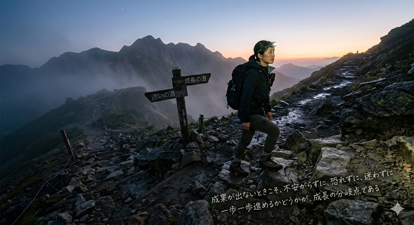 成果が出ないときこそ、不安がらずに、恐れずに、迷わずに一歩一歩進めるかどうかが、成長の分岐点であると考えています。
